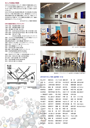 Since our establishment in 1978, while the name of our exhibitions has changed from Saitama Arts Festival to Contemporary Artists Festival (CAF, in its initial stage) and CAF (2nd stage), we raised social awareness of the expressions and concepts of contemporary art. We are also currently trying to make our activities more intensive through artistic interaction with the community, and positioning the direction of international exchange as an axiomatic part of our work.